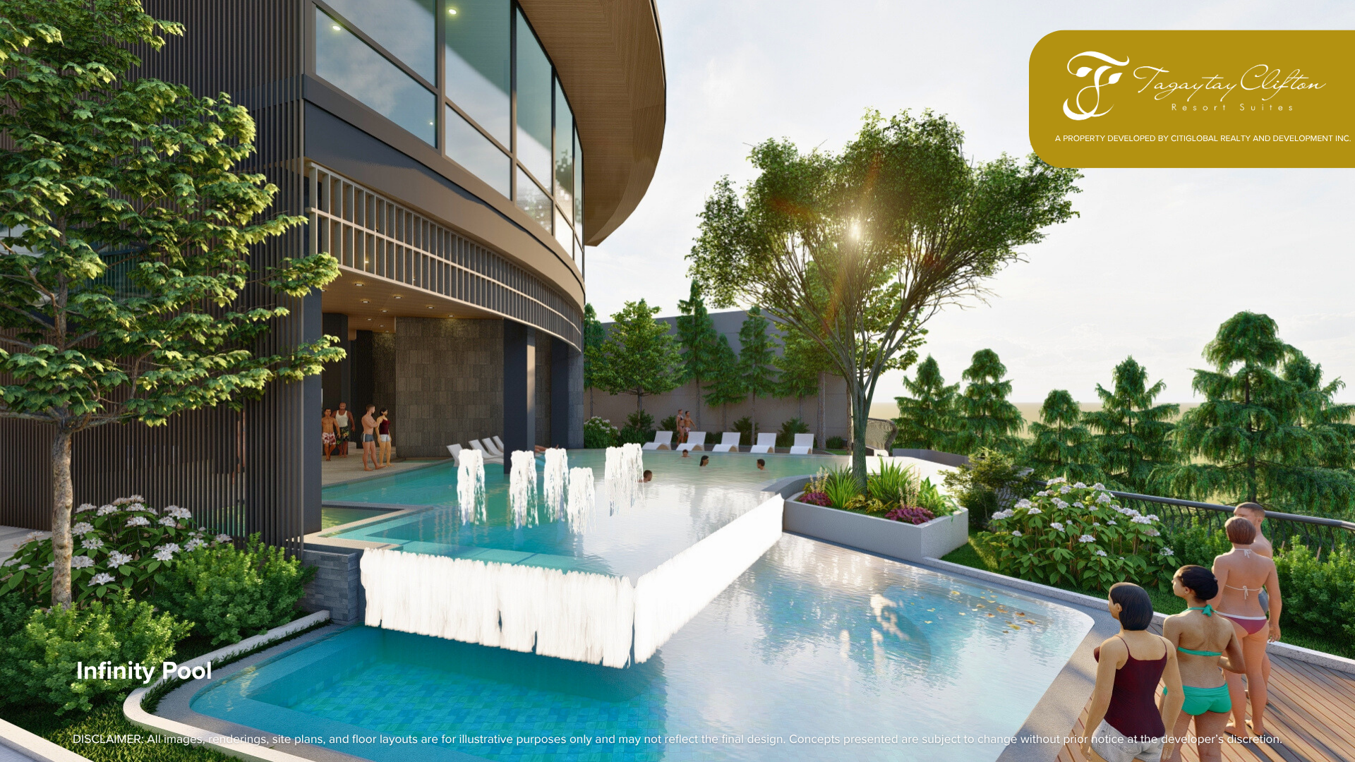 Tagaytay Clifton Resort Suites offers an infinity pool surrounded by lush greenery and mountain views — a peaceful escape where you can relax and reconnect with nature.